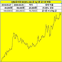 KRX 금시장 금값 가격 변화와 은행 예금 이자 비교(금 달러 환율 국내 금 1g 매매기준 실시간 차트 보기)