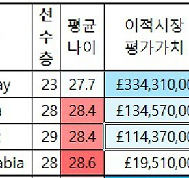 축구/대표팀 썸네일형 리스트형 축구 대표팀 평가전 한국과 일본 상반된 결과 원인 한국과 일본은 월드컵 축구대표팀을 장기간 이끌었던, 외국인 감독을 경질하고 국내 감독 선임한 공통점을 갖고있다, 월드컵을 대비한 이번 평가전 한국과 일본 결과를 보던중, 상반된 결과 원인중 하나를 발견했네요, 한국 2-0 온두라스 선발 명단을 보면, 베스트11 평균 시장평가가치가 528만파운드 VS 31만파운드로, 수준차이를 보인건 손흥민 새로운 평가가치 4500만파운드가, 한국 대표팀 57%, 선발70%이상빼면 온두라스와 큰차이없는, 온두라스 수준때문이라기보단 평균 연령에서 문제가 있었습니다, 선발11명 평균연령 한국26.5 - 온두라스29.1 = -2.6살차 일본과 가나 경기 출전 결과를 보면, 평균 시장 평가가치가 일본222만파운드 VS 가나 363만파운드로, 이정도 격차는 도토리 키재기로 차이가 .. 더보기 남태희 카타르 리그 위상 카타르리그에서 뛰는 선수들 이적시장 평가가치 살펴보는데, 남태희 밑에 스네이더, 사비가 눈에 띠네요, 전성기가 지난 노장이라해도 월드클래스 선수들인데, 어찌됐든 현재 평가는 남태희가 위 ^^ 팀이 압도적 화력으로 무패 우승했고, 팀이 우승하는데 남태희가 핵심적인 역할 한건 아니지만, 10골4도움 AM(공격형미드필더)로 충분히 활약한, 알두하일 최전방 두 골잡이와 잘 조화한 결과죠, 호날두 메시보다도 더 짧은 시간에 득점한 상위권 4선수 득점 패턴을 볼때, 카타르리그 수비력이 그렇게 수준높진않다는걸 참고하더라도, 사비나 스네이더르가 있는 다른팀 제치고 우승한 경쟁력은 인정할만합니다, 리그 22경기 무패우승뿐만 아니라, 홈어드벤티지가 강한 아챔에서도 홈/원정 가리지않는 8연승 파죽지세, 다른 선수들 잘하는데.. 더보기 러시아 월드컵 조별리그 상황 분석 2018 러시아 월드컵 조별 FIFA랭킹, 선수층 이적시장 평가가치 비교해봤습니다, 아직 월드컵까진 기간이 많이 남아있으니, 상세 스쿼드, A매치 경기결과를 월드컵까지 업데이트해야 정확한 판세가 보일텐데, 이것만 봐도 16강 진출팀이 60%는 맞출수있을거 같네요 ^^; 본선32개국 23인 명단, FIFA랭킹, 이적시장 선수평가가치, 잉글랜드 선수들 홈 그로운 거품 30% 이상, 잉글랜드 우승 원했다면 케인 알리 레쉬포드가 맨시티로 이적 필요, 이름 쓴 선수들은 대부분 5천만 파운드 이상 월드클래스고, 스페인은 많아서 다 쓸 수 없네요 ^^; 6월 3일 현재까지도 23인 명단 확정하지 못 한 팀 절반 이상입니다, 업데이트 하고 있지만 보는 시점 정확한 명단은, 명단 위에 링크 주소 클릭하면 그 시점 수정된.. 더보기 유럽 5대 축구 리그, 한국 중국 일본, 우승상금과 팀 경기력 분석 서로 다른 3개 국가 팀 실력 비교해보려면 객관적인 사실을 알아야 하고, 객관적으로 비교하긴 매우 어렵지만, 100% 정확하진 않더라도 제 3자 시각으로 보면 어느 정도 근사치는 가능합니다. 한국 중국 일본 3개국 축구 수준은 대표팀 간 A매치 결과로 알 수 있고, 현재 수준 높은 국가는 FIFA랭킹 참고 비교 할 수 있습니다, 2014 브라질 월드컵 때까지 홍명보가 58위까지 추락 시켰던 걸, 슈틀리케가 3년 간 경쟁력 회복했었지만, 유럽 선수 차출 경기력 어려움을 기회로, 신태용으로 바꾼 후 결과는 참담한 수준으로 추락했습니다, 중국보다 위에 있는 것 같지만 2018년만 놓고 보면 중국보다 아래에 있고, 강팀에 패한 결과라 그렇다고 말 할 수도 있겠지만, 강팀에 패하던 약팀에 패하던 패한 건 패한 겁.. 더보기 이전 1 ··· 3 4 5 6 다음
